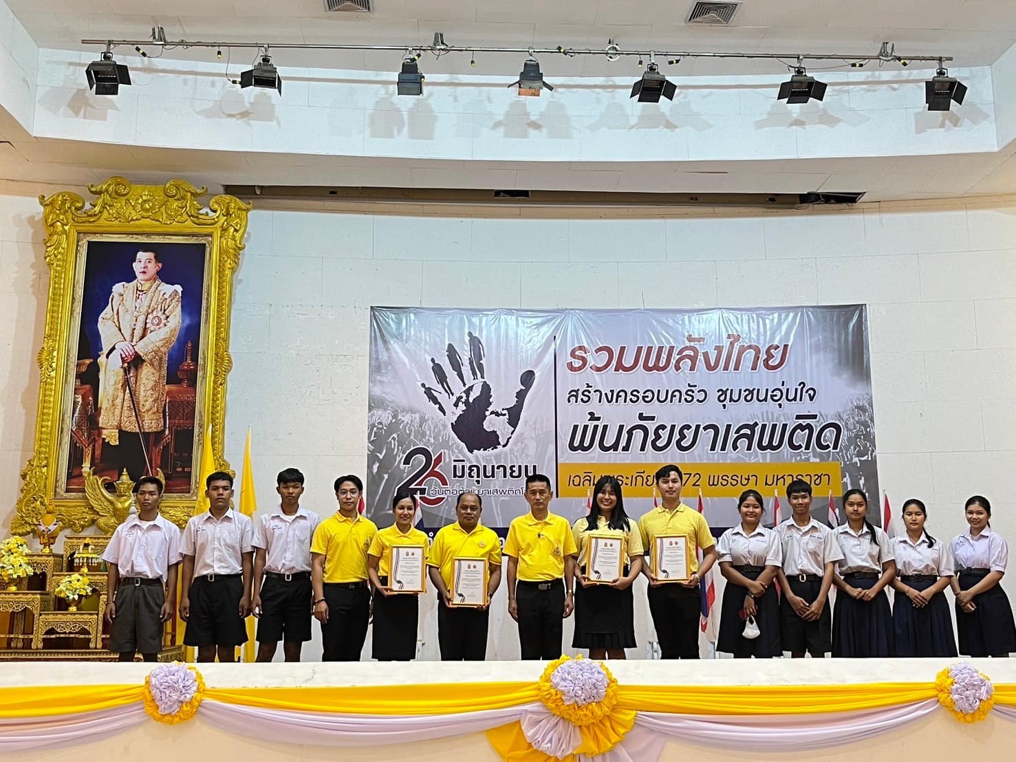 ข้ารับเกียรติบัตรจากผู้ว่าราชการจังหวัดชุมพร สถานศึกษาที่ผ่านเกณฑ์การประเมิน “สถานศึกษาสีขาว ปลอดยาเสพติดและอบายมุข ปีการศึกษา 2566 ดีเด่นระดับเงิน