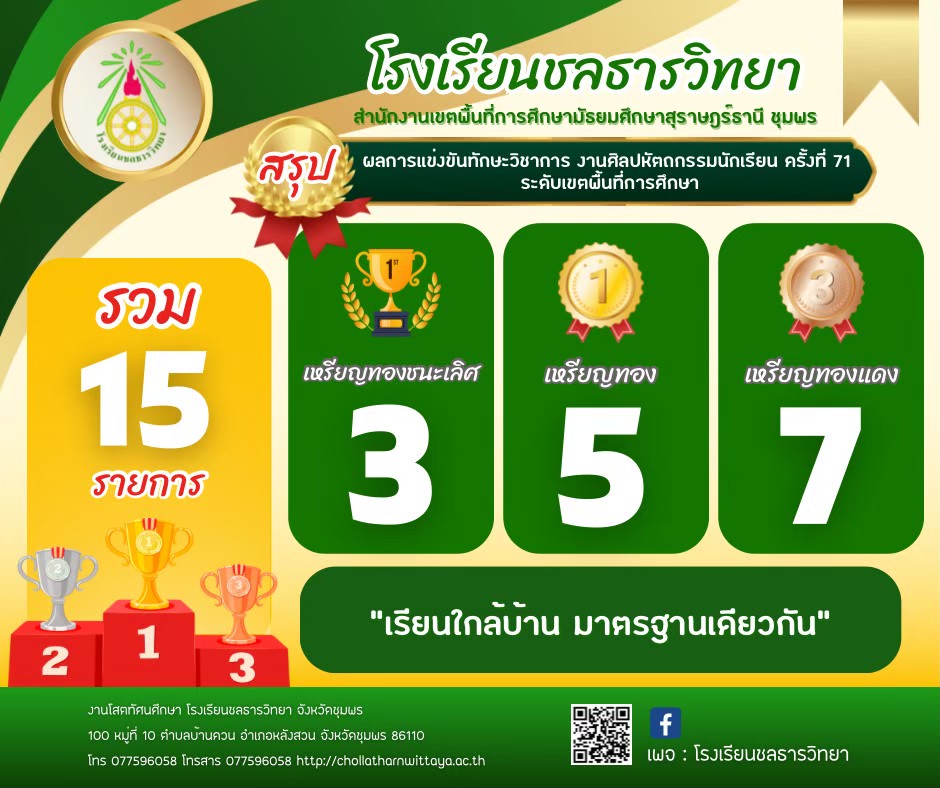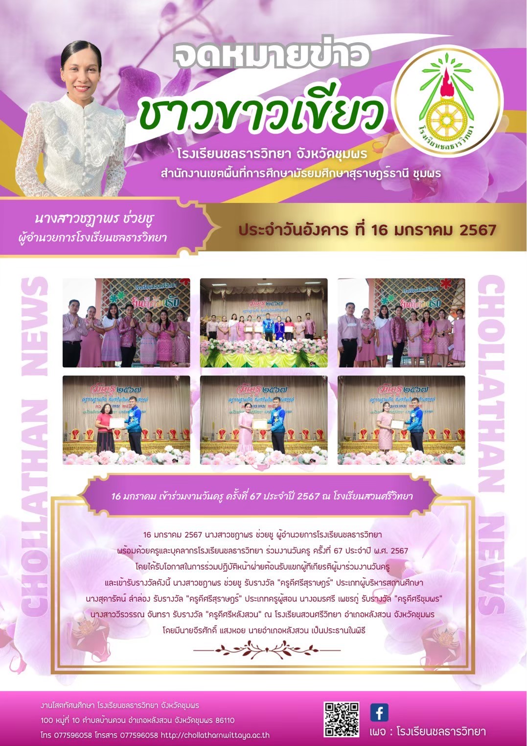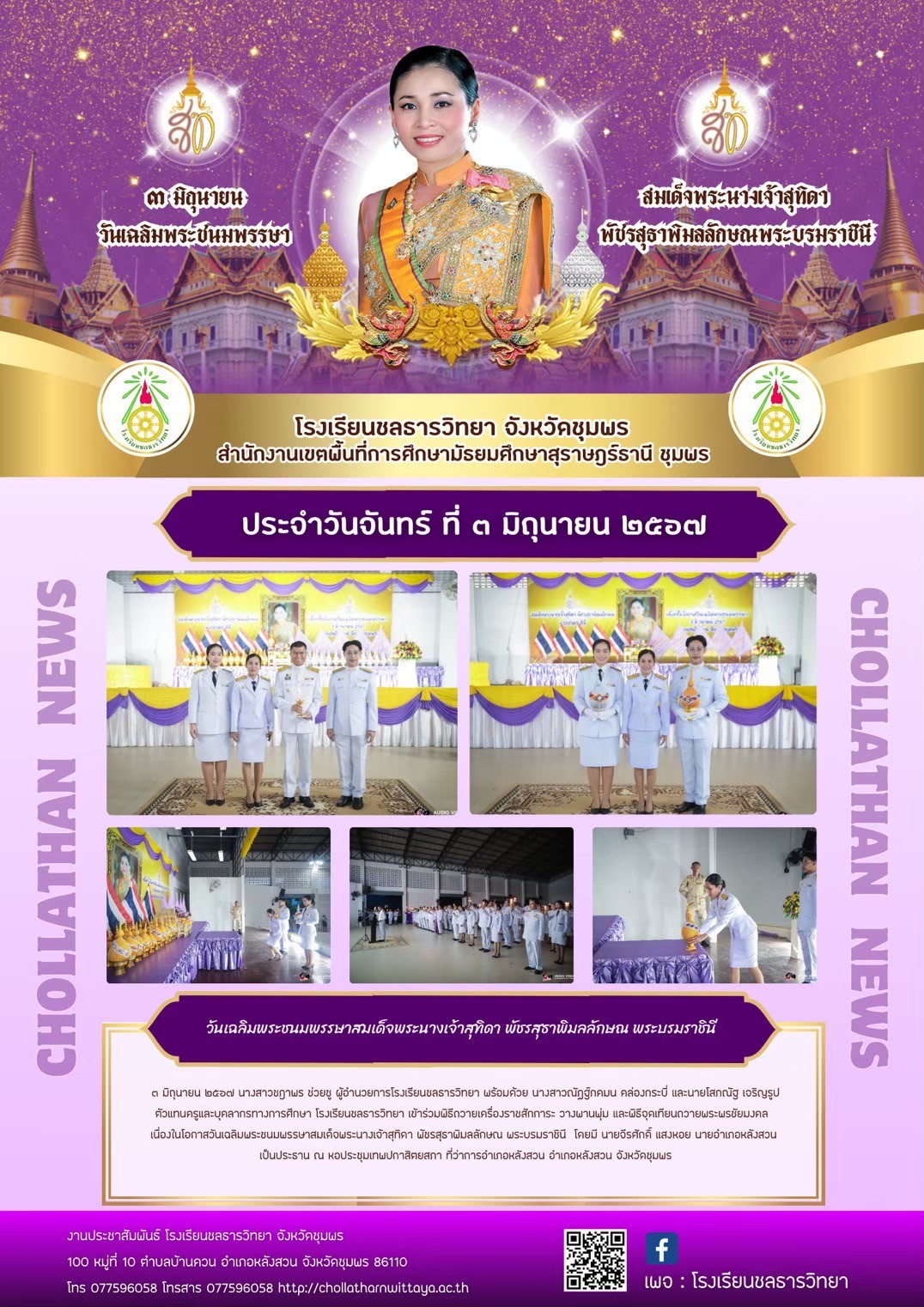 วันที่ 5 กรกฎาคม 2568 นางสาวชฎาพร ช่วยชู ผู้อำนวยการโรงเรียนชลธารวิทยา เข้าร่วมพิธีเปิดงานวันวิชาการ เปิดบ้านห้องเรียนพิเศษ ครั้งที่ 15 SMTE ณ โรงเรียนสอาดเผดิมวิทยา จังหวัดชุมพร 14 ก.ค. 68