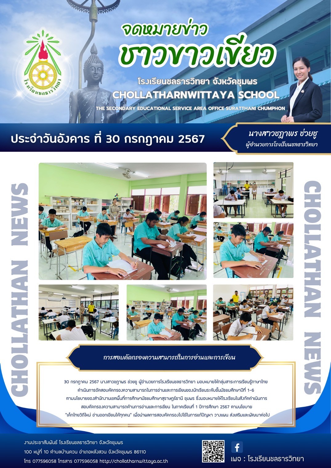 วันที่ 4 กรกฎาคม 2568 ดร. สุชาดา ลิ่มสวัสดิ์ ผอ.สพม.สุราษฎร์ธานี ชุมพร พร้อมด้วยนางสุจินต์ ภิญญานิล ผอ.กลุ่มนิเทศติดตามประเมินผลการจัดการศึกษา เข้าตรวจเยี่ยมโรงเรียนชลธารวิทยา เพื่อเป็นขวัญกำลังใจให้แก่ผู้บริหาร คณะครู นักเรียน และบุคลากรทางการศึกษา ในกา 05 ก.ค. 68